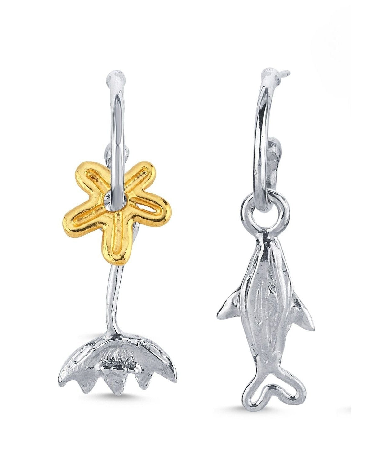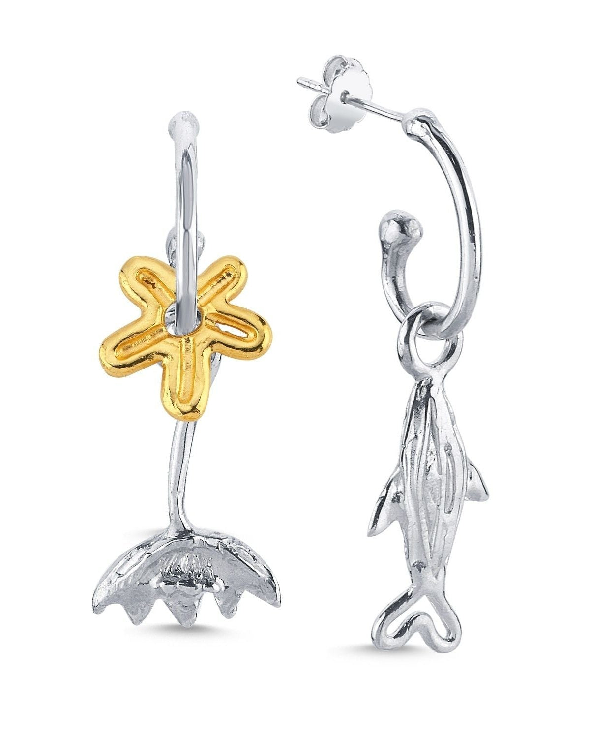 Altın Kaplama ve Gümüş Küpe Seti - Ters Lale, Küçük Çiçek ve Küçük Balık