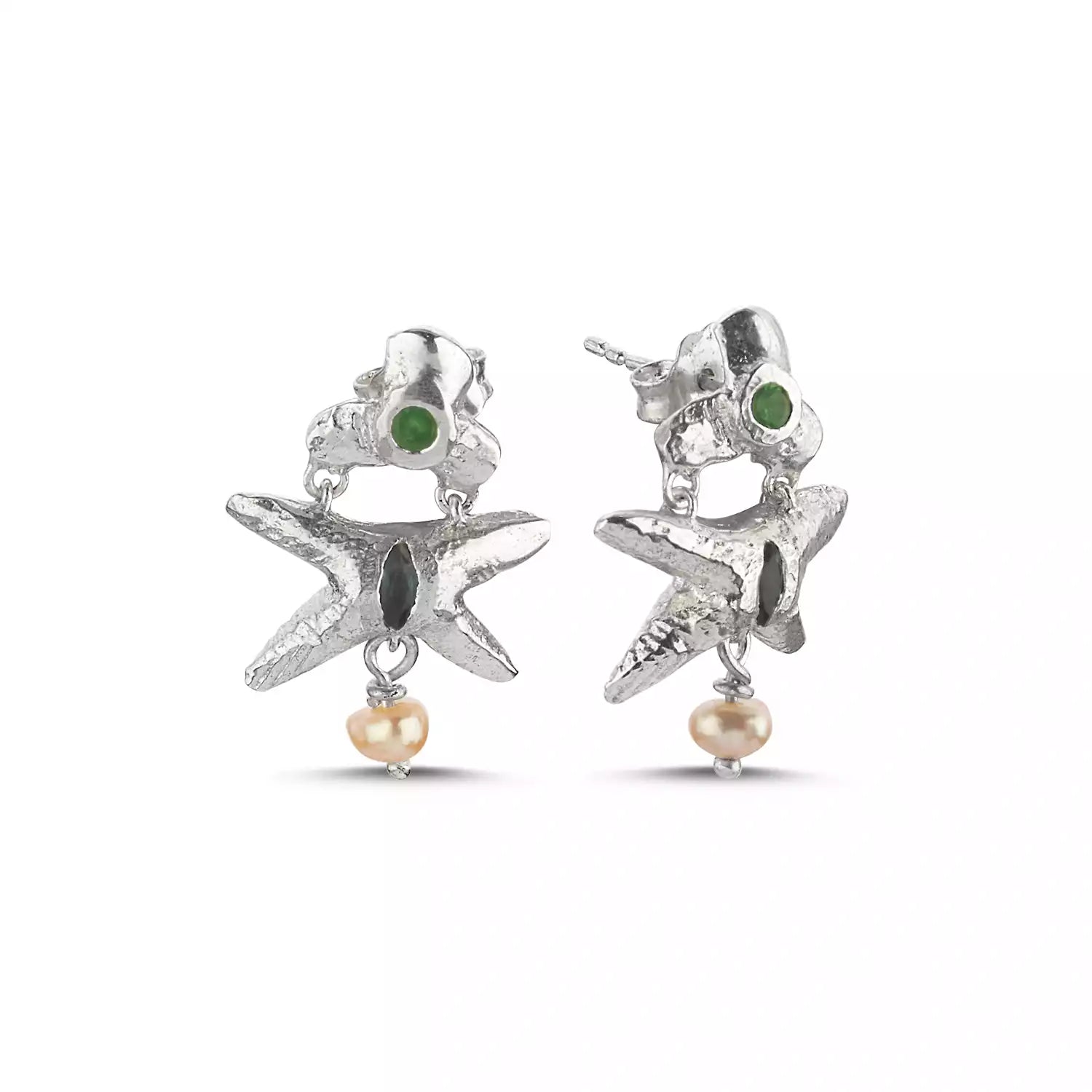 Lascivia küpeleri gümüş versiyonunda, london topazın mavisi ve sallanan incileriyle denizin ruhunu kulaklarında dans ettiriyor.